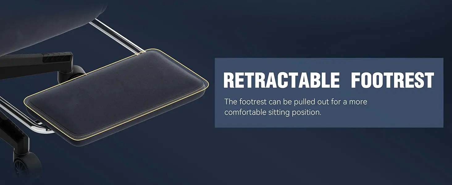 This chair isn?t just about looks; it?s built for performance. Its adjustable footrest allows you to kick back and unwind during long hours of use. Plus, the chair is rotatable, making it practical for any workspace.