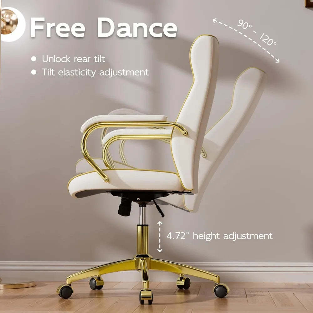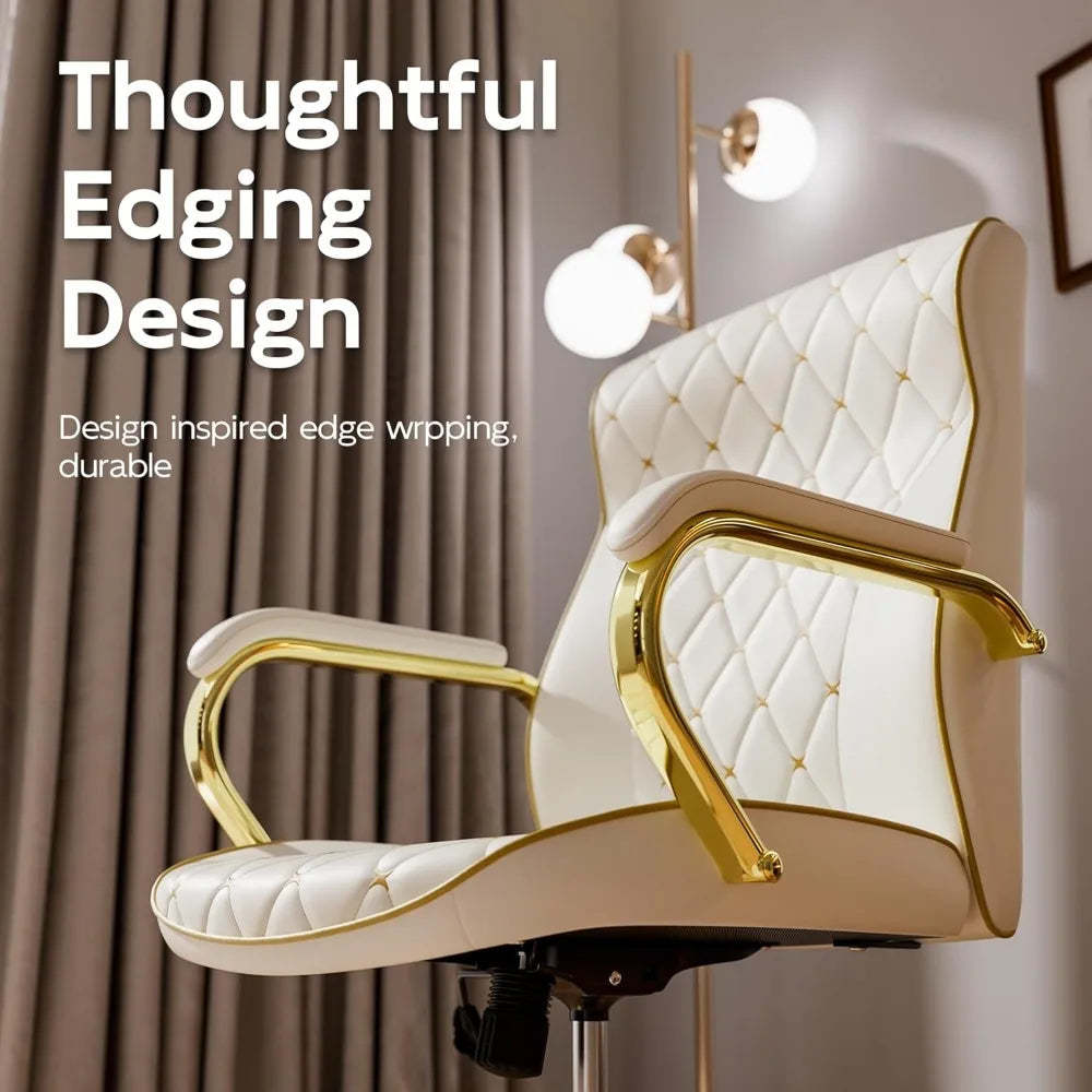Featuring a stunning white and gold color scheme, this chair not only offers a contemporary aesthetic but also provides exceptional support with its soft leather upholstery and padded arms. The ergonomic design ensures that you can work for hours without discomfort, enhancing your productivity while adding a touch of sophistication to your workspace.