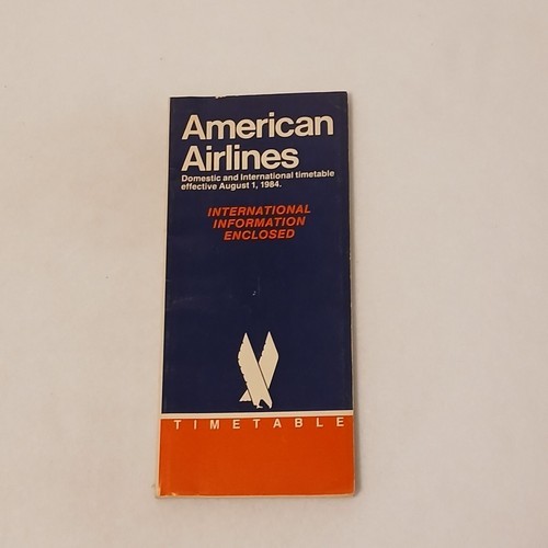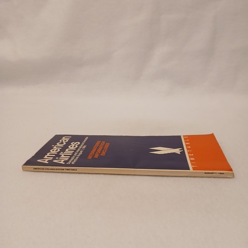 This listing is for a single American Airlines Timetable booklet. This timetable was effective on August 1, 1984. It features passenger flight schedules, passenger information, and flight itineraries. The cover is clean with minor wear. The booklet is complete. There are 178 pages. There are no missing or torn pages. The pages are clean.