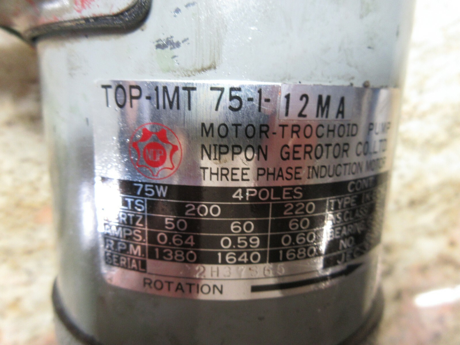 NOP MOTOR TROCHOID PUMP TOP-1MT 75-1-12MA 75W IK-ECKL TOP-12 MA MORI SEIKI SL-3A