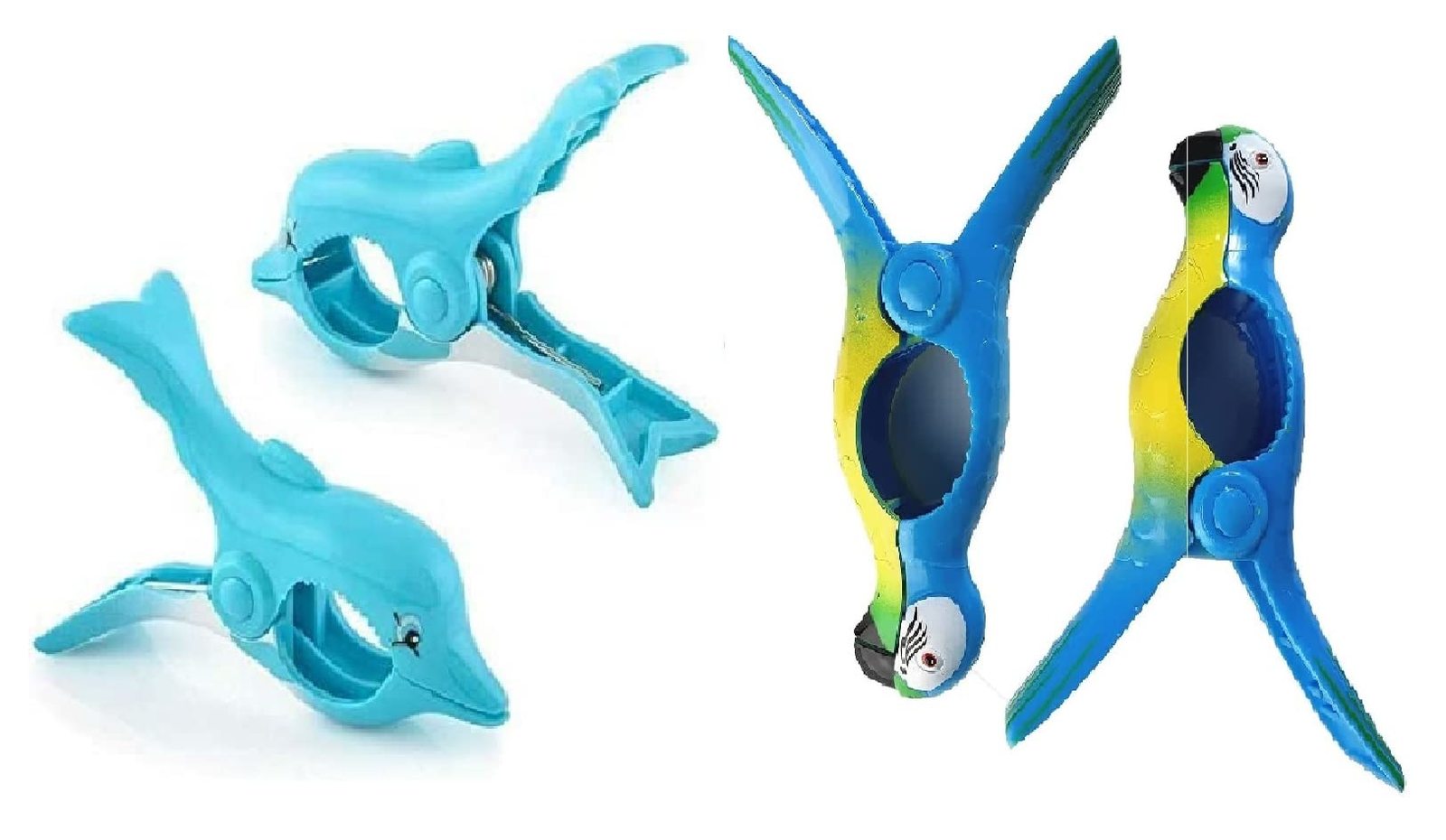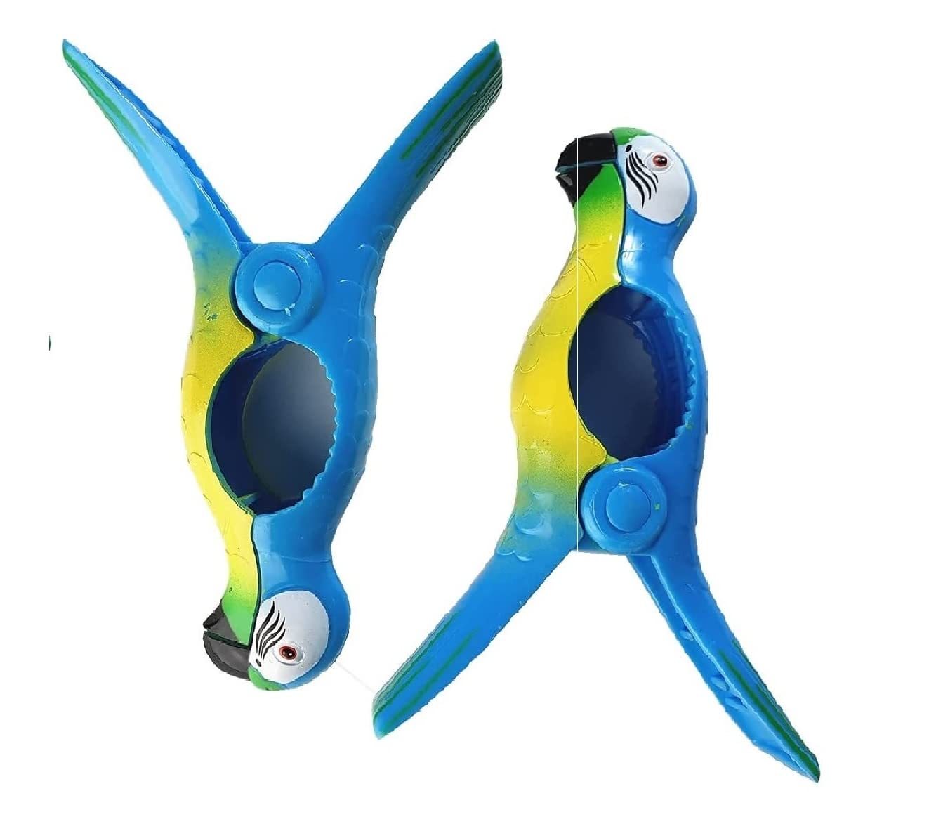 C&H Solutions 2 Set (4 Ct) Blue Parrot/Dolphin Beach Towel Clips Jumbo Size for