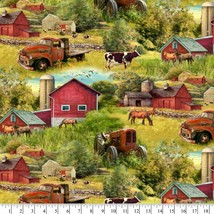 David Textiles Country Farm Precut Sewing Fabric Red Barn Animals Cotton 1-Yard