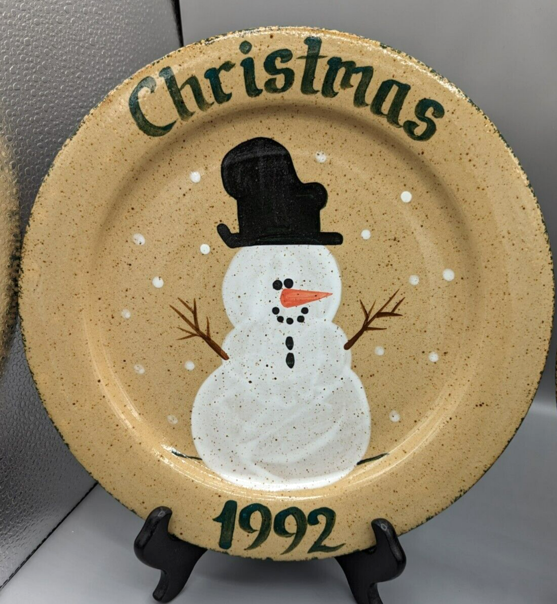 Three Rivers Pottery 10.25" Plate Dish Snowman 1992 Amy Coshocton Hand Painted