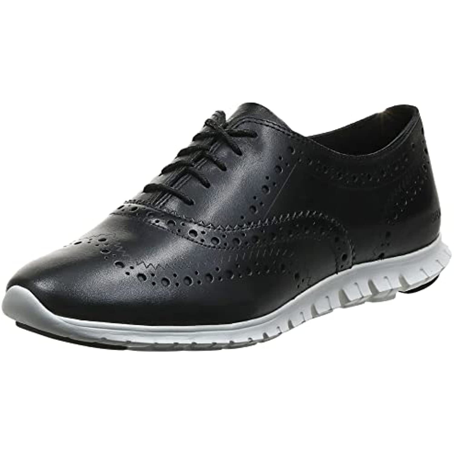 Cole Haan Womens Zerogrand Wing Oxford Flat W18202 Black leather/White Size 5.5M