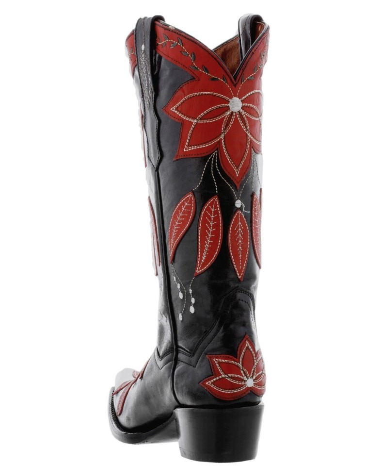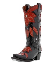 Womens Western Rodeo Boots Black Leather Lotus Dream Catcher Snip Toe Size 5-6.5