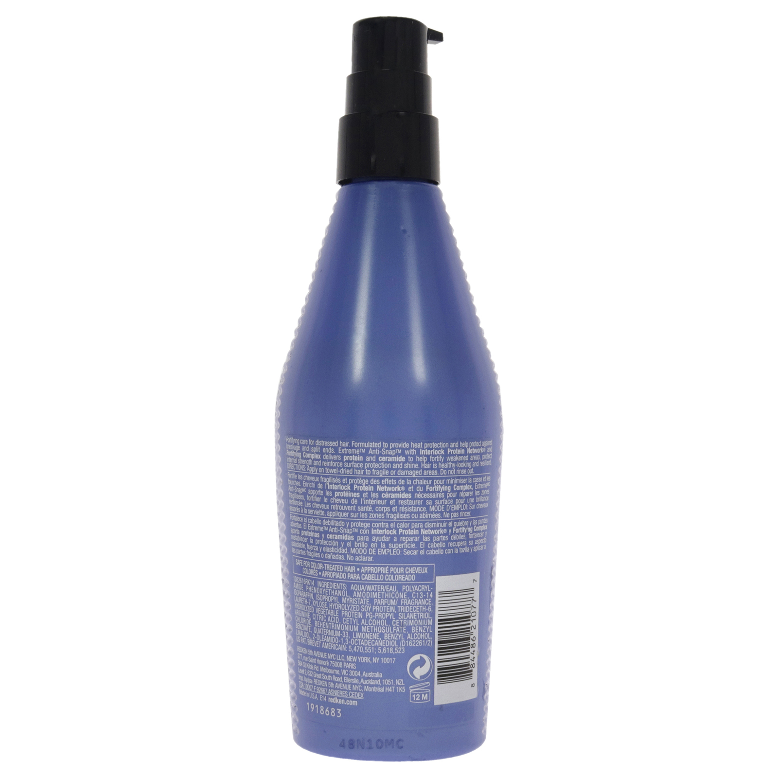 Redken Extreme Anti-Snap leave-in conditioner gently smoothens the hair cuticle to help prevent hair breakage and fortify damaged hair. Anti-Snap is formulated with Redken's Strength Complex and acts as a deep conditioner, reducing friction from brushing and preventing further damage, leaving hair healthy, shiny, and resilient.