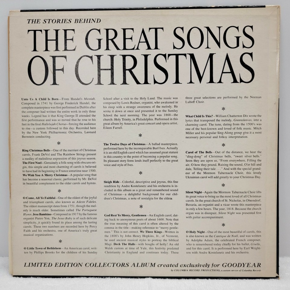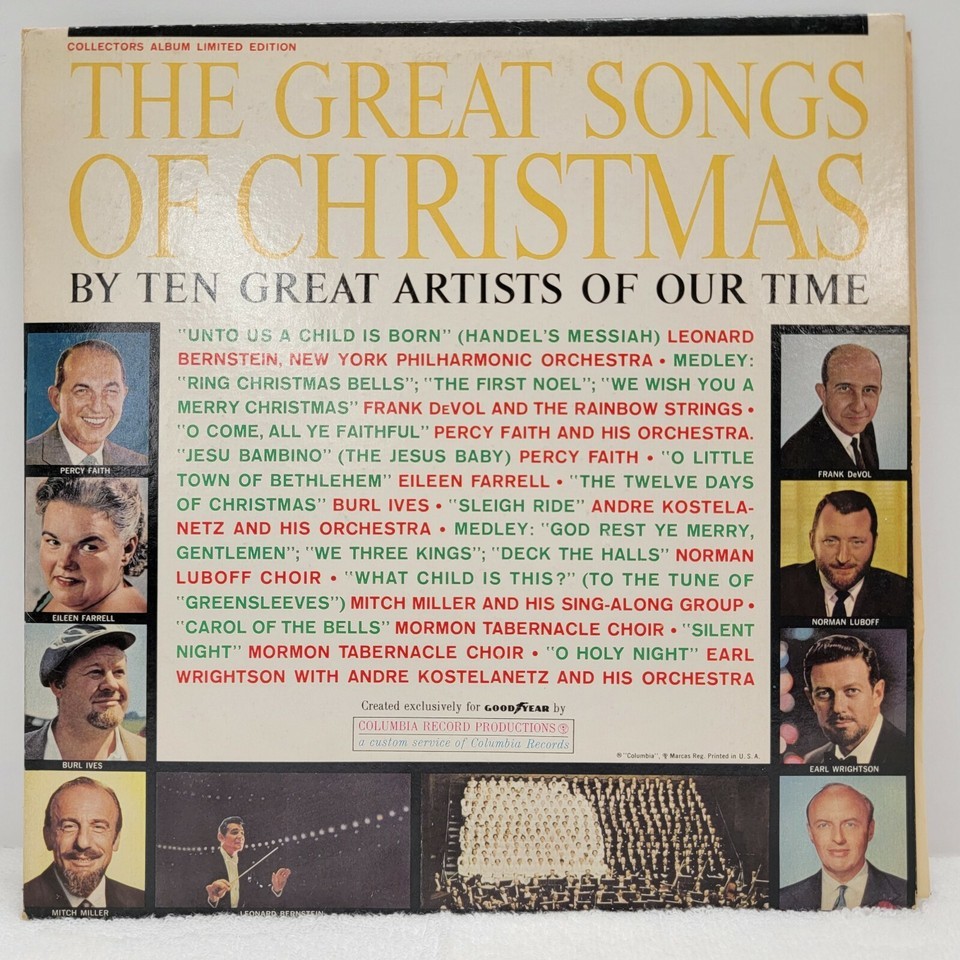 THE GREATEST SONGS OF CHRISTMAS Percy Faith Burl Ives Mitch Miller LP LIMITED ED - Cleaned and tested. Images shows the actual album that will ship.