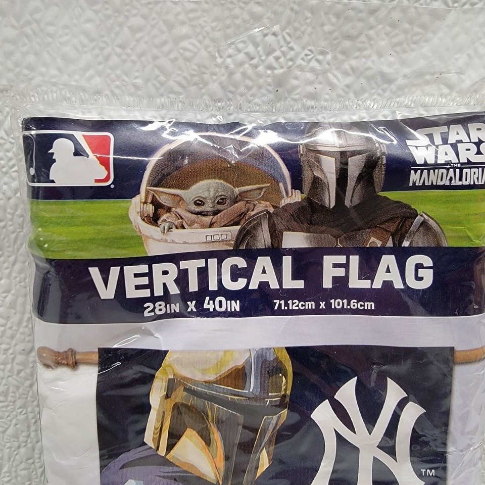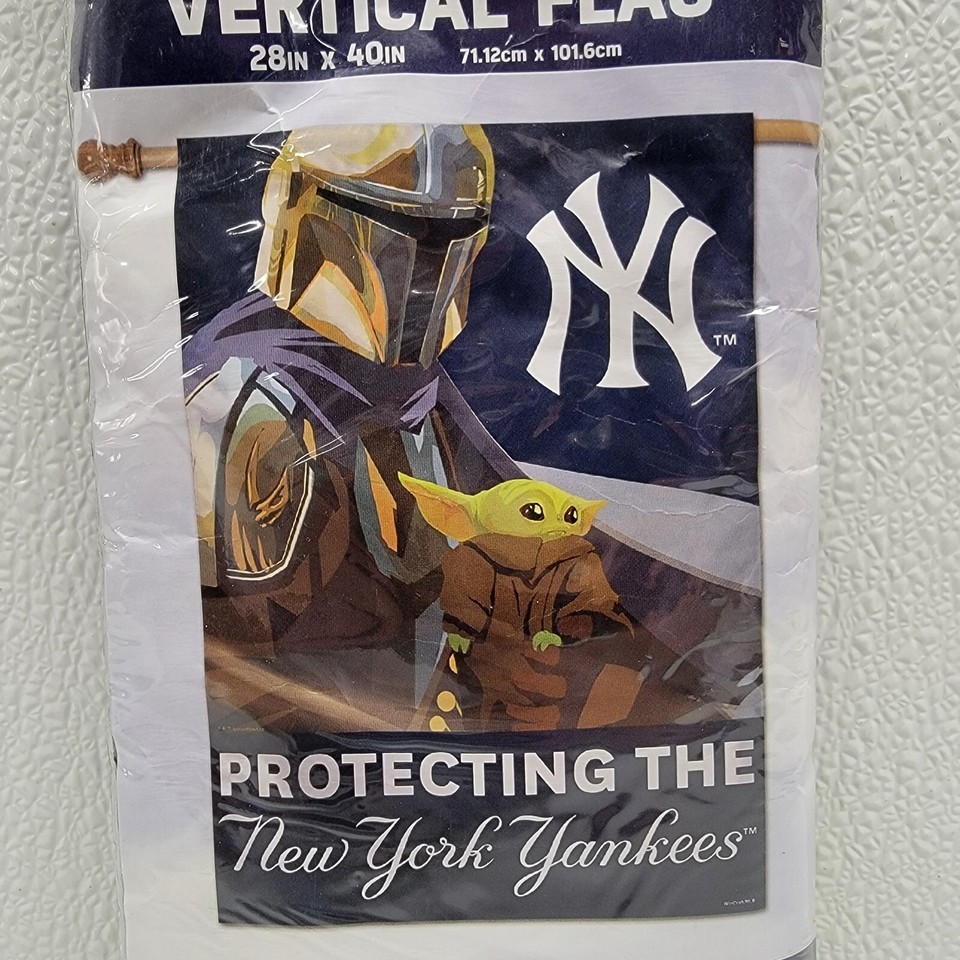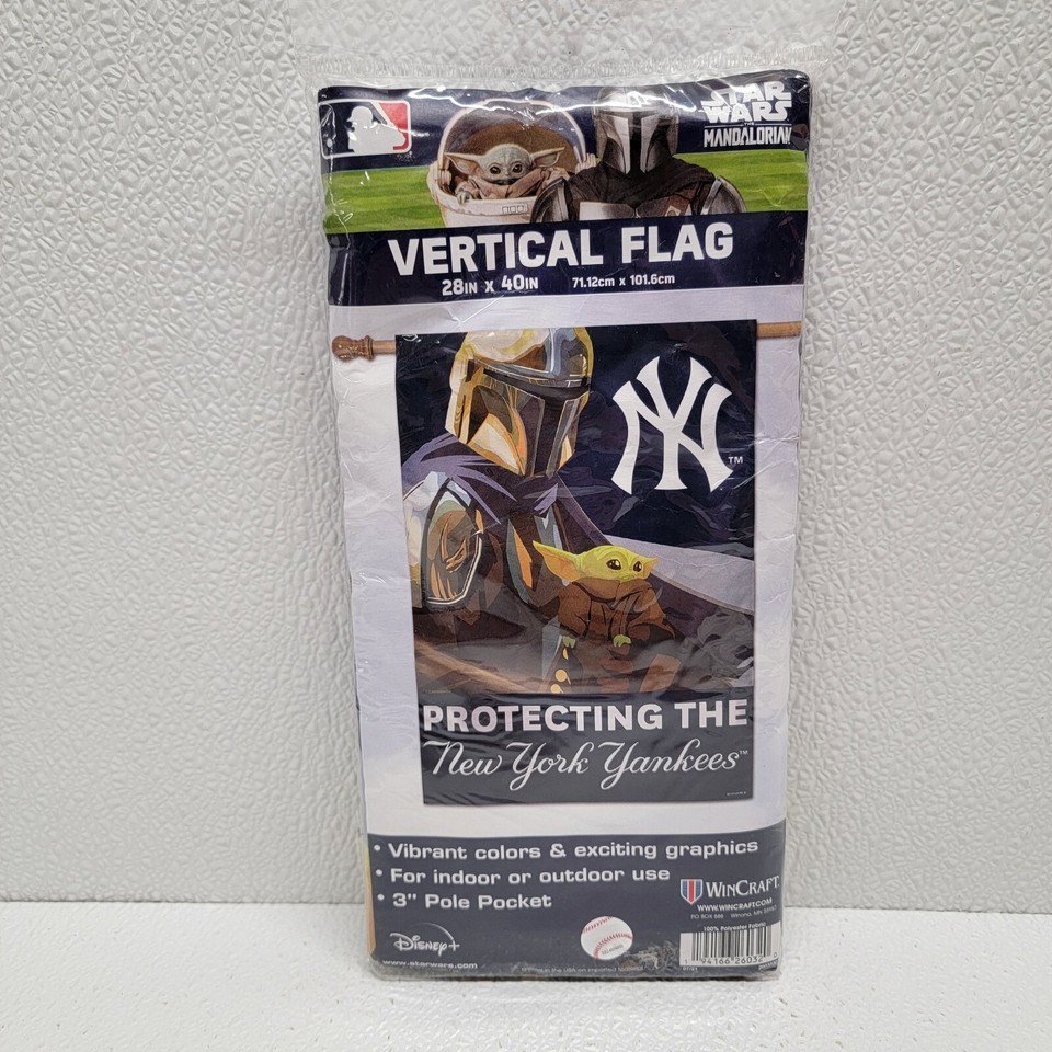 Wincraft Disney Star Wars Mandalorian Protecting The New York Yankees Vertical Flag 28" x 40". Images show actual item that will ship.