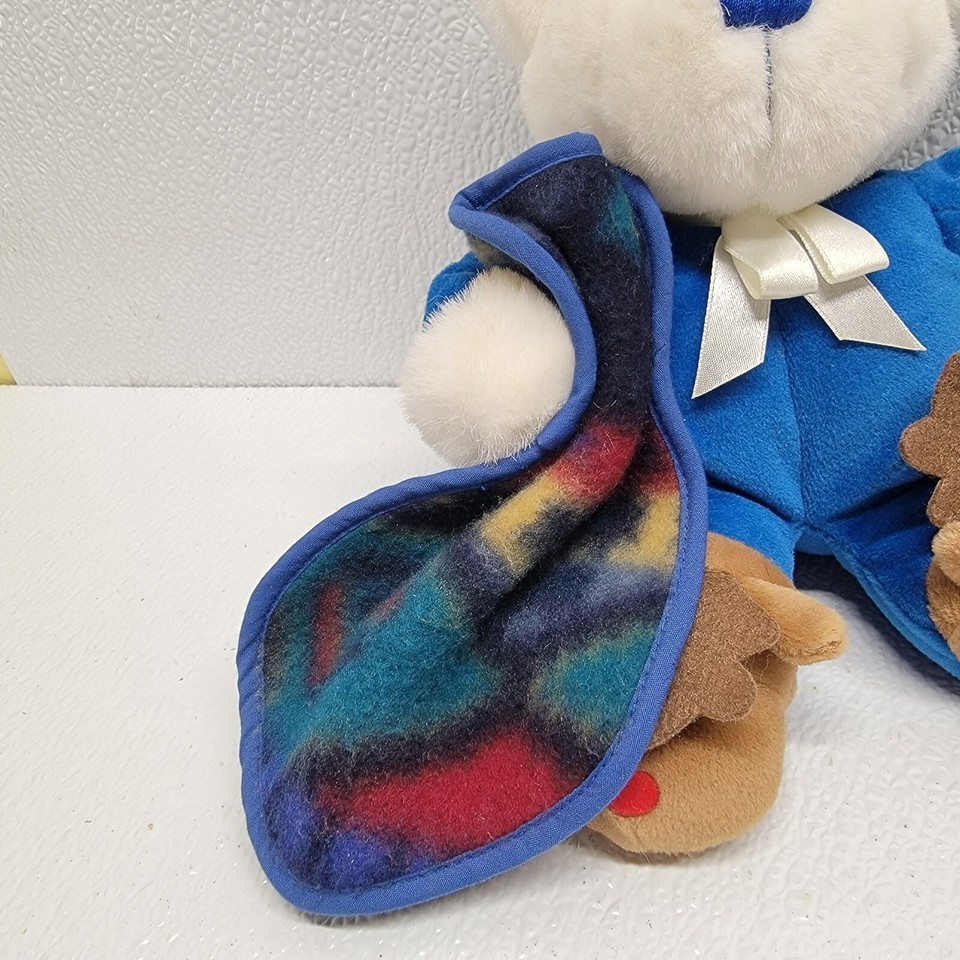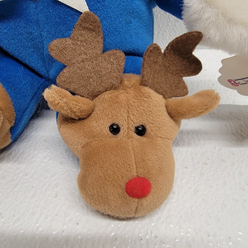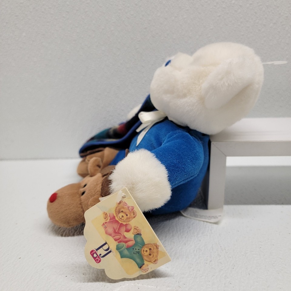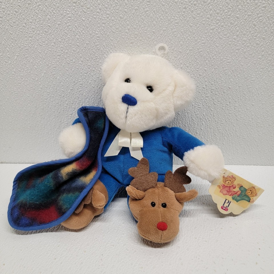 Vintage PJ Toys Bear Plush Blue Pajamas Reindeer Christmas Slippers Blanket. Images show actual plush that will ship.