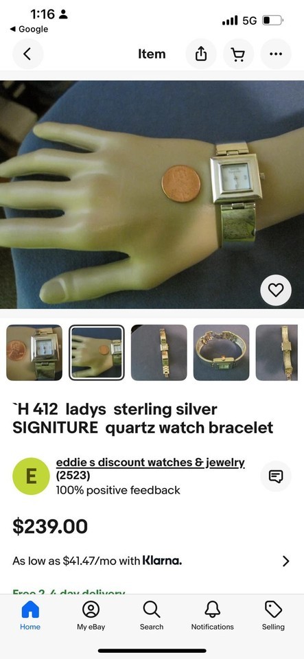 Needs a battery. .925 sterling silver with steel back. Japanese movement.
