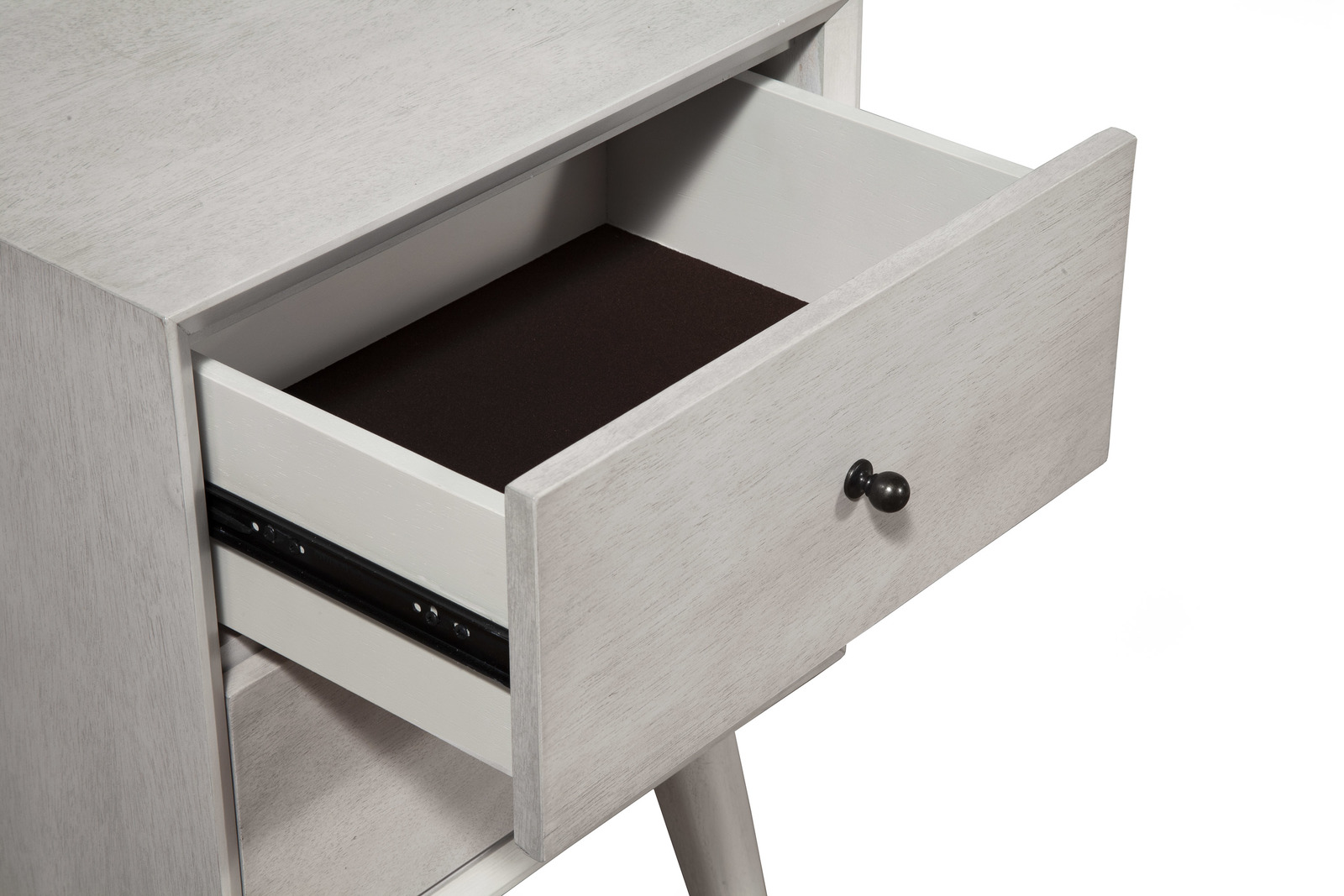 Features: Mid Century Modern Style Design 2 Drawer Nightstand French English Dovetail Drawer Construction Felt Lined Top Drawer Versatile design fits living rooms, bedrooms, or offices Stylish addition that complements any dcor Set Includes: One (1) Nightstand
