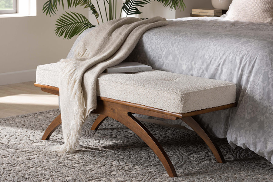 Sugar Japandi Cream Boucle Fabric and Walnut Brown Bench