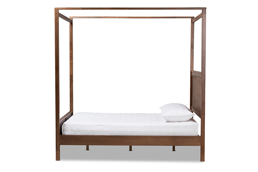 Corsa Walnut Brown Queen Size Platform Canopy Bed