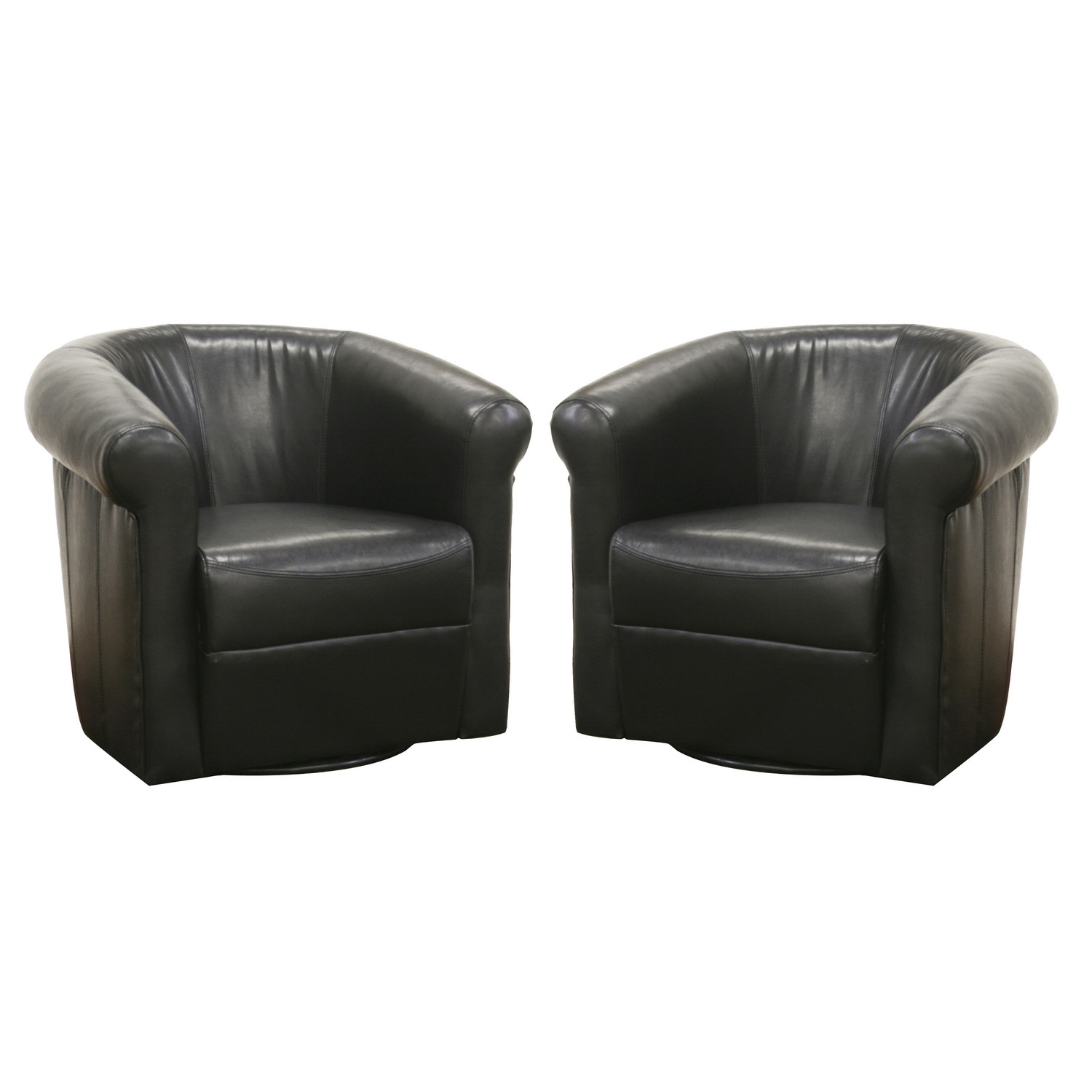 Handsome in a den, home office, or corporate setting, this black faux leather club chair is a stylish and affordable way to furnish your space. It is constructed with a frame made from plywood and MDP with dense foam cushioning and black faux leather. The circular metal base with non-marking feet allows the chair the ability to effortlessly swivel 360 degrees. This leather club chair is fully assembled upon delivery.