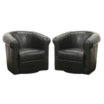 Aden Black Brown Faux Leather Club Chair w/360 Degree Swivel
