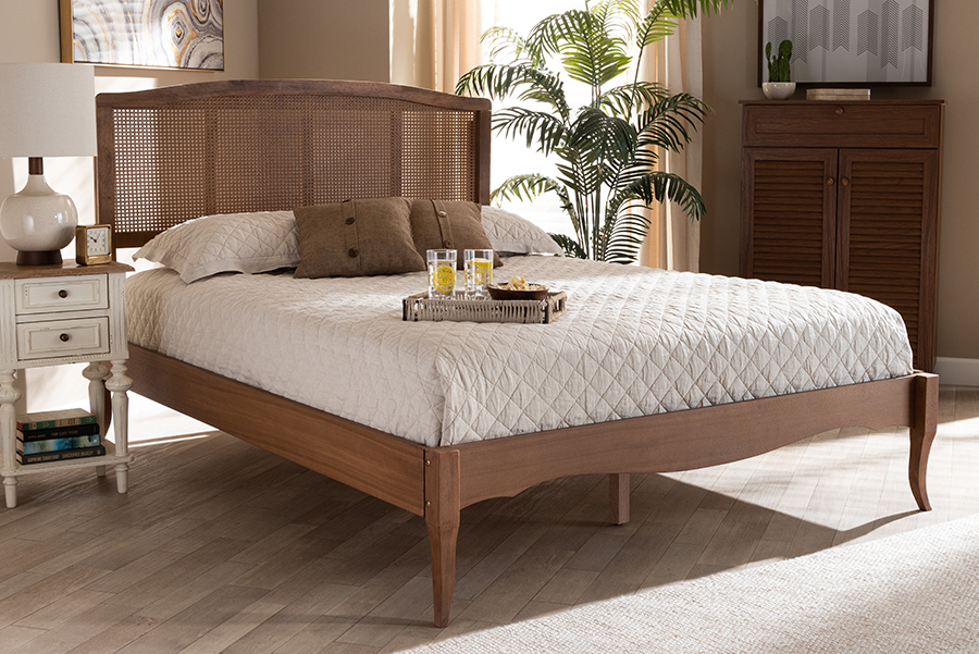 Corinne Ash Wanut and Synthetic Rattan Full Size Platform Bed