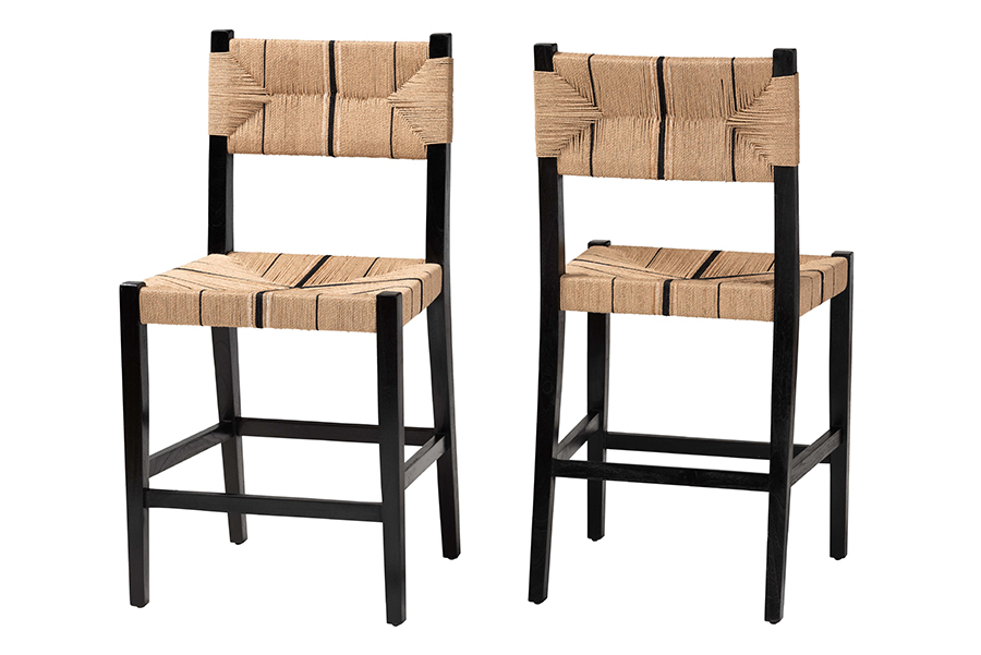 Morris Bohemian Paper Loom and Black Mahogany Wood 2Pc Counter Stool Set