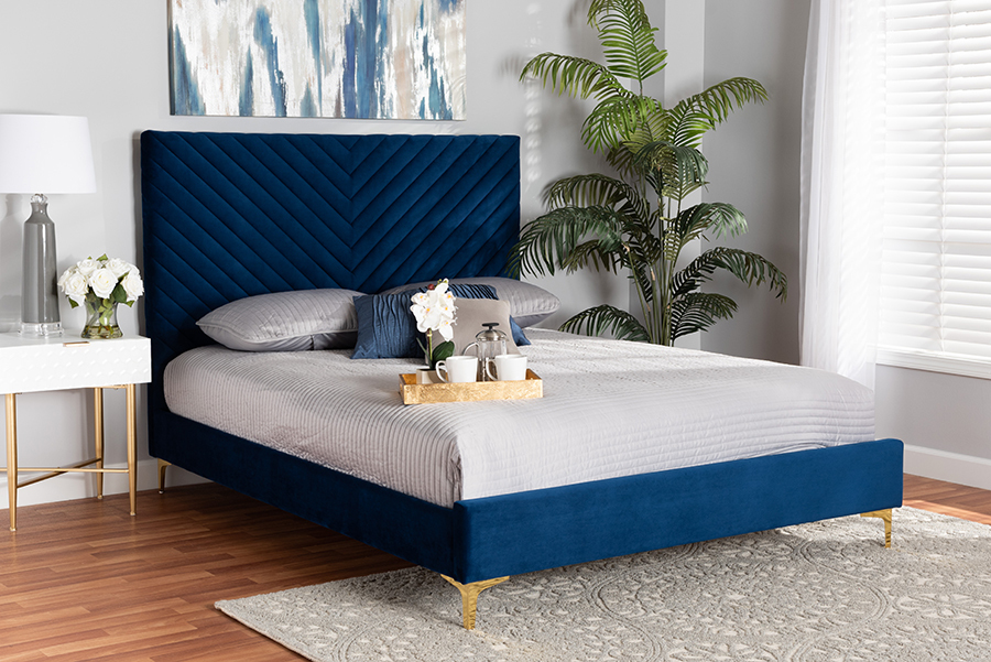 Sasha Navy Blue Velvet Fabric Upholstered and 48 similar items