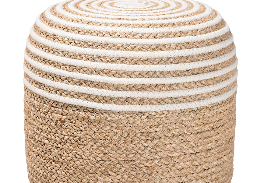 Revelin Natural Brown Seagrass and Woven Rope Ottoman Footstool