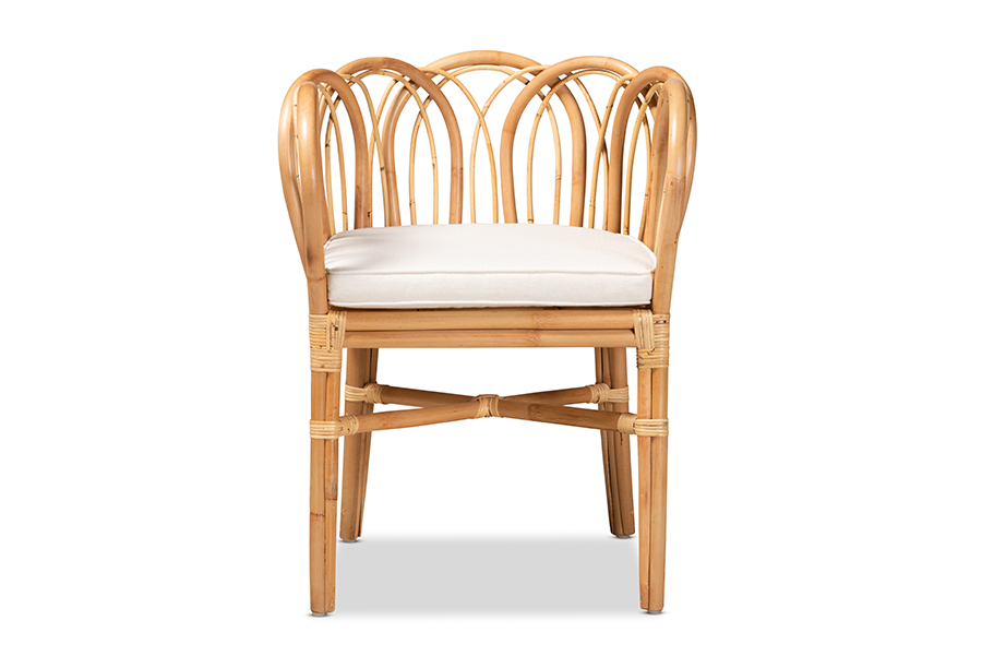 Spruce up your dining room or lounge with the eye-catching design of the Graham dining chair. Handmade in Indonesia, the Graham is comprised of natural rattan. Its curved backrest creates a unique, geometric silhouette that allows light to travel more freely throughout the room. Fully assembled, the plush, removable cushion is padded with soft foam and upholstered in smooth fabric. With a charming, tropical look, the Graham dining chair brings personality to the modern home.