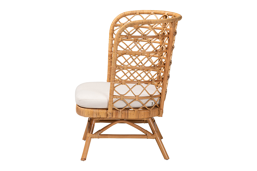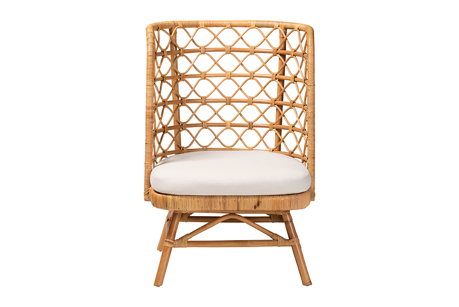 Invigorate the aura of any setting with the stunning charisma of the Kobie accent chair. Made in Indonesia, this bohemian piece is handcrafted from natural rattan by skilled artisans. Its captivating backrest features a lovely openwork design for an immaculate display from any angle. The Kobie will arrive fully assembled and is fitted with a removable seat cushion upholstered in plush fabric. Angled legs complete the stunning look, making the Kobie accent chair a remarkable addition to any arrangement.