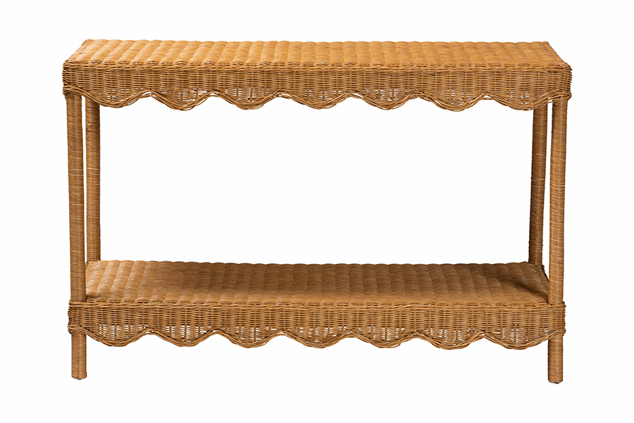 Philip Bohemian Light Honey Scalloped Rattan Console Table