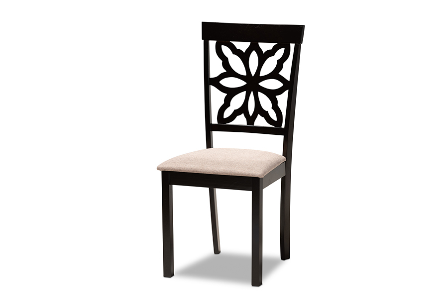 Reba Sand Fabric Upholstered and Dark Brown 7-Piece Dining Set