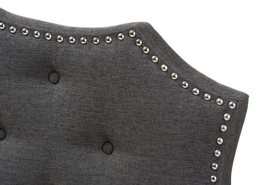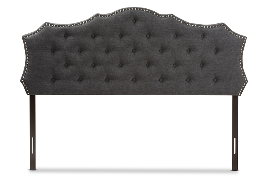 Classic finishes and an elegant curved shape make the Moscow fabric upholstered headboard the perfect centerpiece in your bedroom or guest room. Constructed of solid rubberwood frame, the Moscow headboard is upholstered in greyish beige or dark Graypolyester fabric that is durable. Featuring curvaceous style lines with button-tufted design, the Moscow is glamorously trimmed with silver nail heads. The headboard is supported sturdily by solid wood posts and is exceptionally cushioned to provide softness and shape while you sit up. Made in Malaysia, the headboard requires assembly.