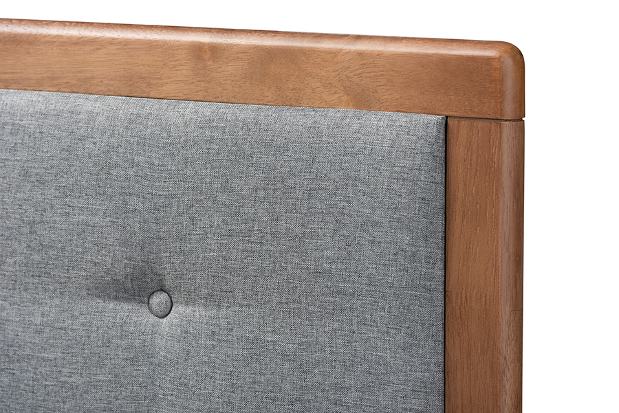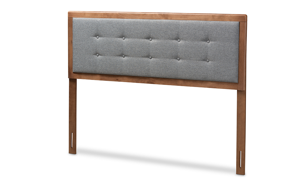 Hadia Dark Gray Fabric Upholstered Walnut Brown King Size Headboard