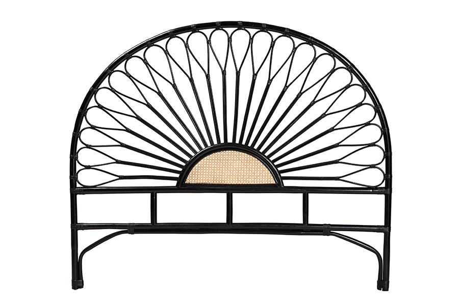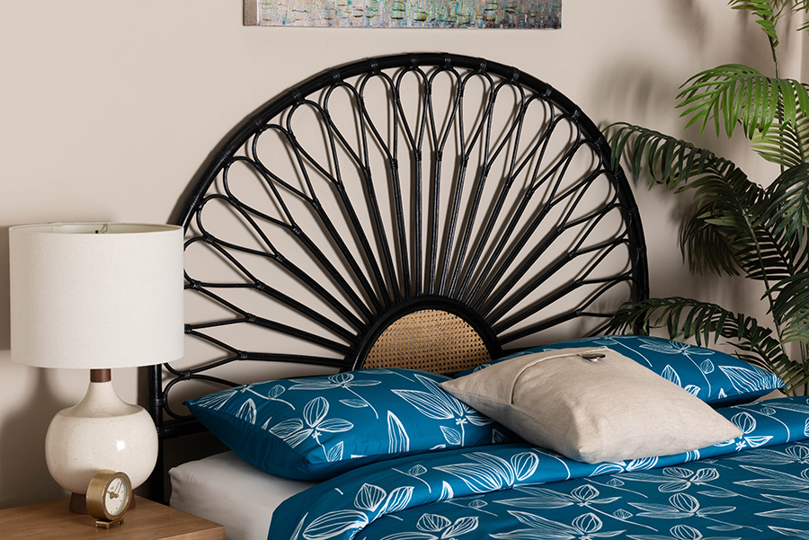 Drucilla Two-Tone Black and Natural Brown Rattan King Size Standalone Headboard