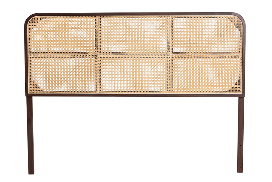 Lindo Dark Brown Finished Bayur Wood and Natural Rattan Queen Size Headboard