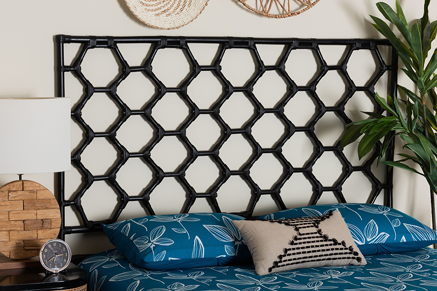 Alecia Bohemian Black Rattan Queen Size Standalone Headboard