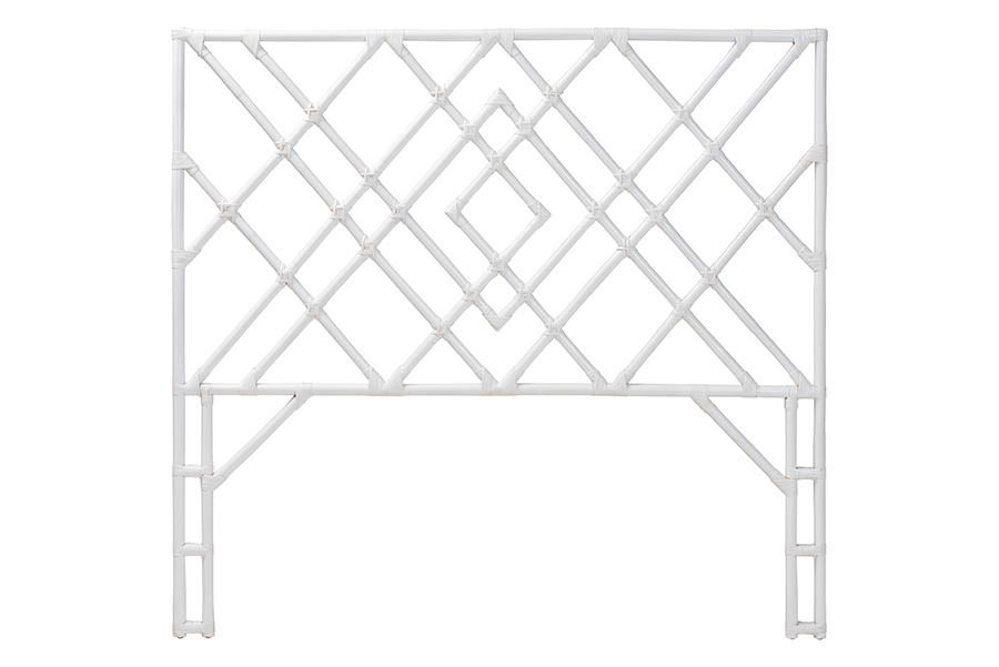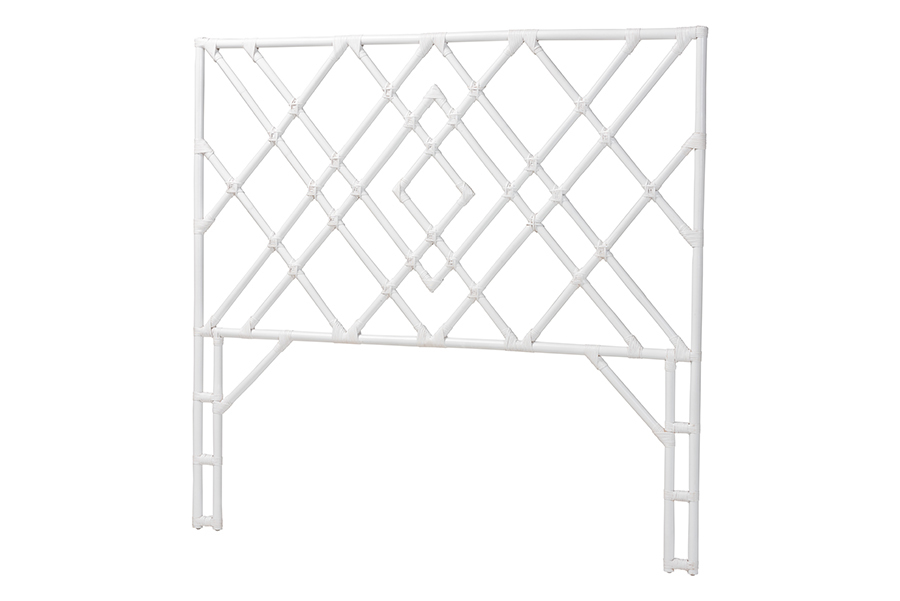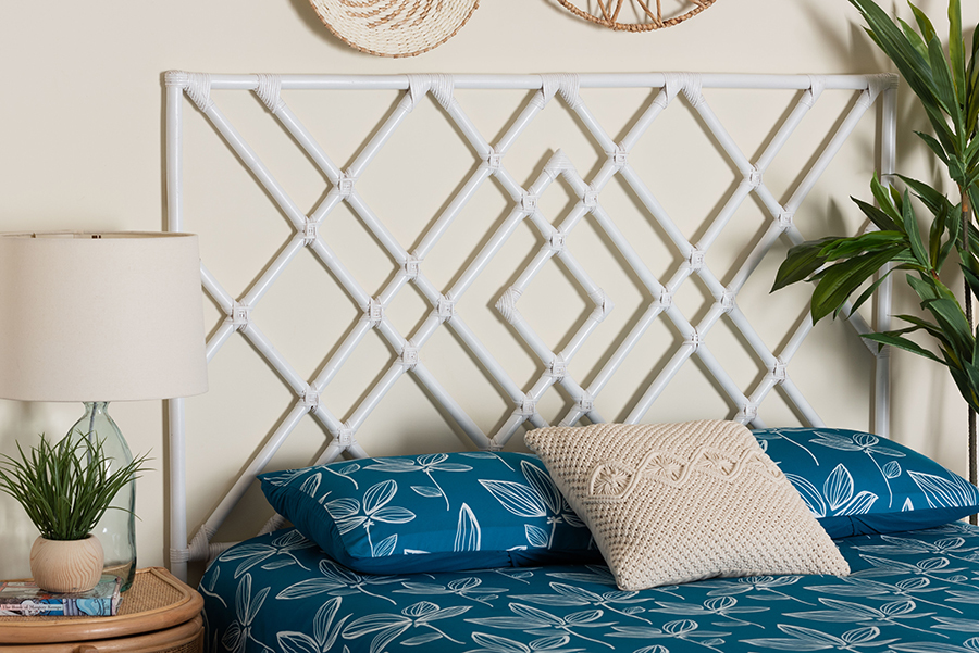 Leighton Bohemian White Rattan Queen Size Standalone Headboard