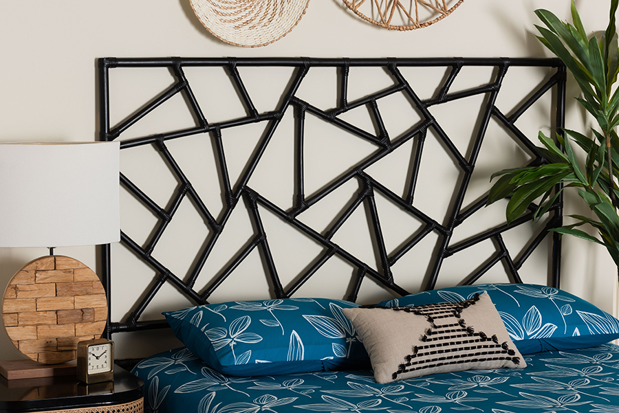 Rikke Black Rattan Queen Size Standalone Headboard