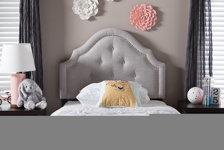 The beautiful curves of the Halen headboard will have you feeling like royalty each and every night. With a nod to classic French design and available in a range of neutral tones, this collection is decadent and utterly divine. The sweeping curves and lush upholstery of the Halen collection reminds us of a candlelight dinner in Paris, both intimate and wonderfully over the top, all at once. For those who seek to add a touch of luxury to their bedroom, the Halen headboard will almost instantly glam up any space with its silver nail heads trim, creating that French-inspired boudoir that you have been dreaming of. Button-tufting design draws the attention of your guests right away! Constructed of solid rubberwood frame and plywood, the headboard is built to last. Soft polyester fabric in grayish beige over the foam filled headboard provides ample comfort for you to lean against. Leg supports are invisible once set up and can be adjusted to suit the height of your ensemble for convenience. Headboard sits between the wall and the ensemble frame, attaching not to the bed base but to the legs, for stability. Made in Malaysia, this twin size headboard requires assembly.