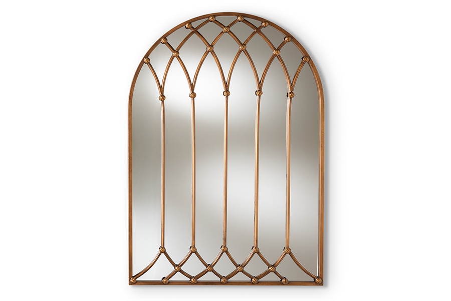 Features: Constructed from rubberwood, MDF wood, and LVL Walnut brown finish Antique bronze finish Arch window design Wall mountable Timeless Pieces That Elevate Any Spaces Set Includes: One (1) Mirror