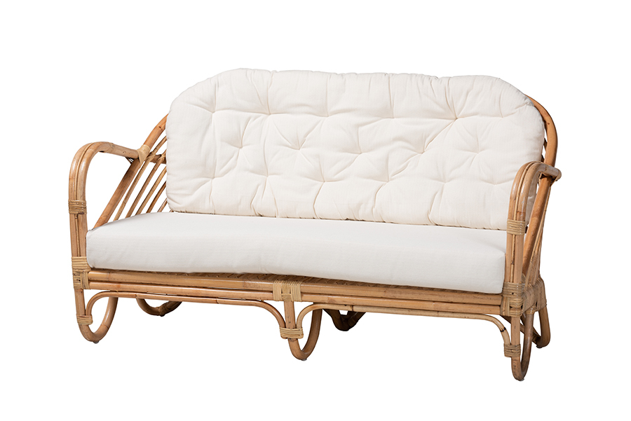 Exhibit an appreciation for remarkable craftsmanship in your space with the fantastic Mathias living room set. Handcrafted in Indonesia, this set includes one loveseat, one chair, and one coffee table handcrafted from natural rattan. Each seat is topped with plush, fabric upholstered cushions as well as convenient armrests for tranquil relaxation. The Mathias will arrive fully assembled and features a wide, circular tabletop to accommodate your needs. Bringing the charm of an exotic vacation to your living room, the Mathias living room set transforms any space.