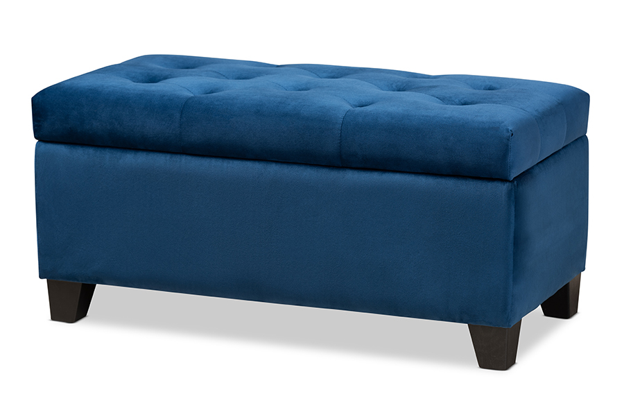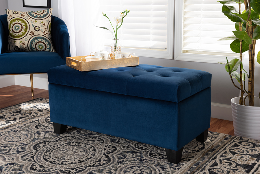 Rocco Navy Blue Velvet Fabric Upholstered Storage Ottoman