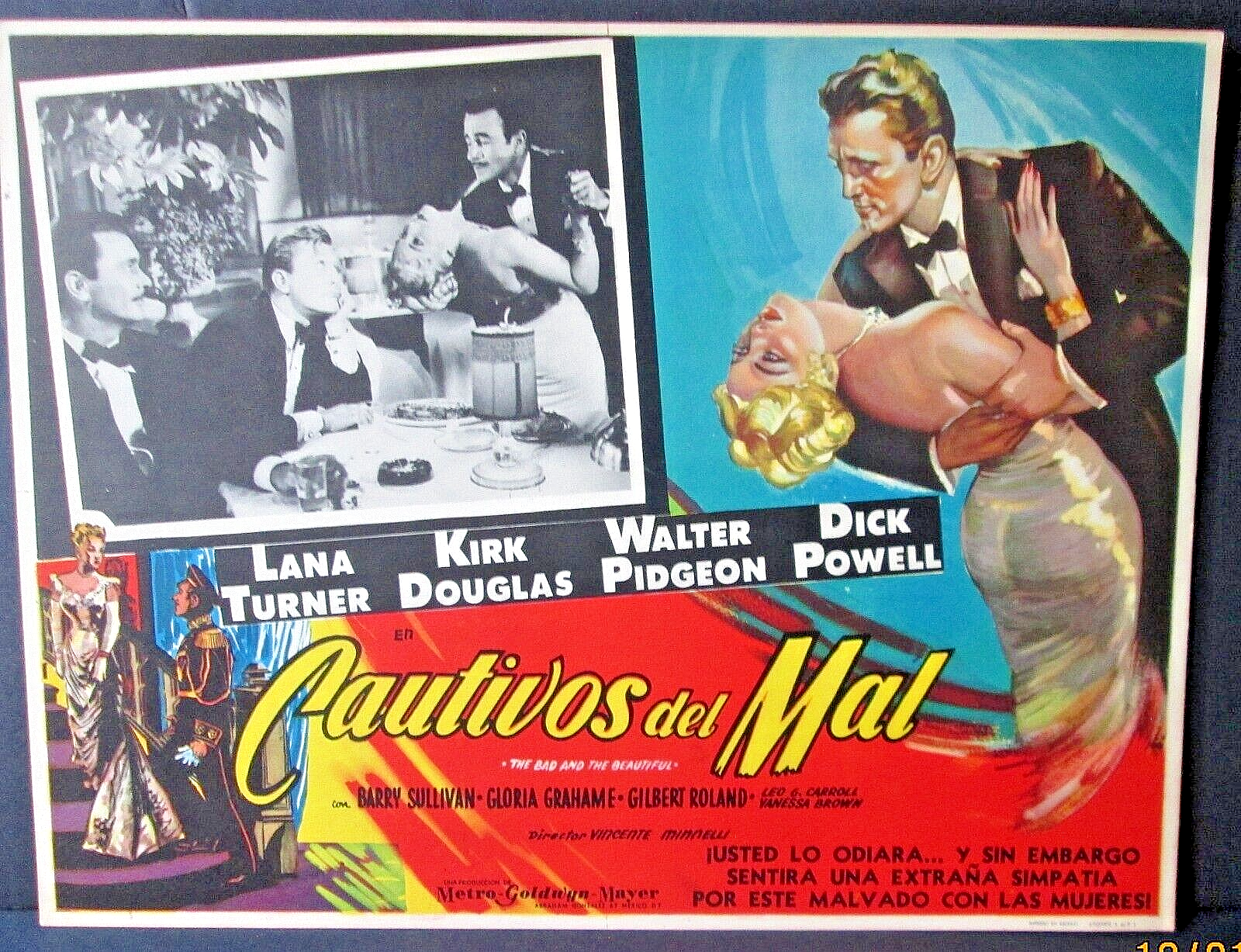 LANA TURNER,KIRK DOUGLAS (THE BAD AND THE BEAUTITFUL) RARE VERSION LOBBY CARDS (TWO LARGE SIZE EURO VERSION LARGE SIZE LOBBY CARDS) A BIT LARGER THAN (11X17) SIZE