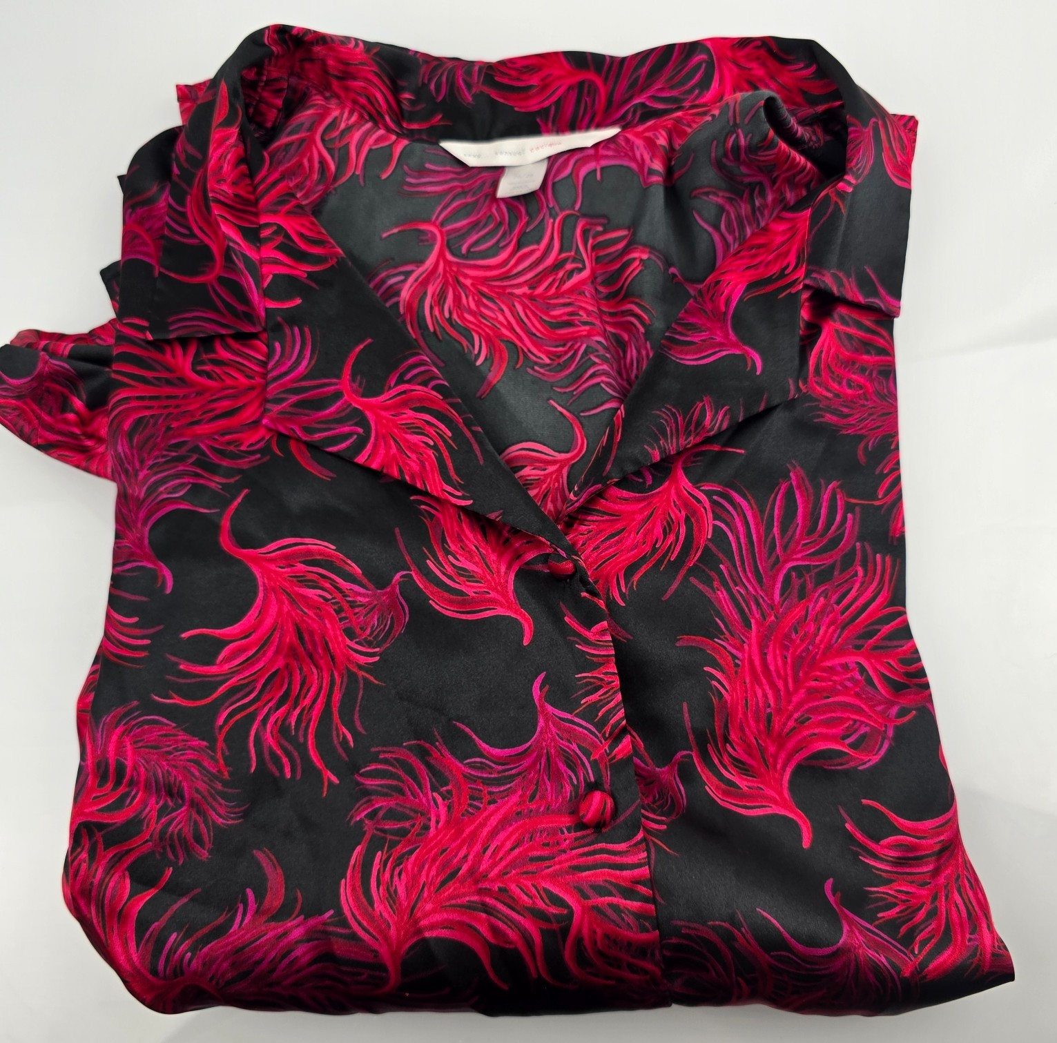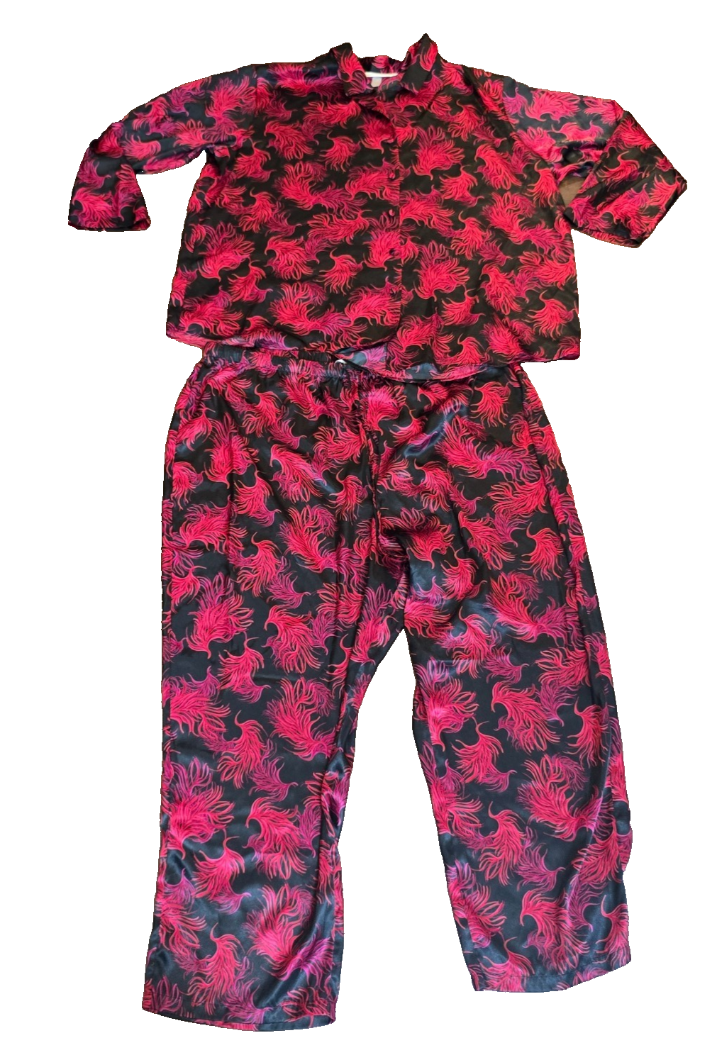Sexy Sensual Cacique Pajamas Lounge 2 Pc Set Button LS Shirt Top Pants 26/28