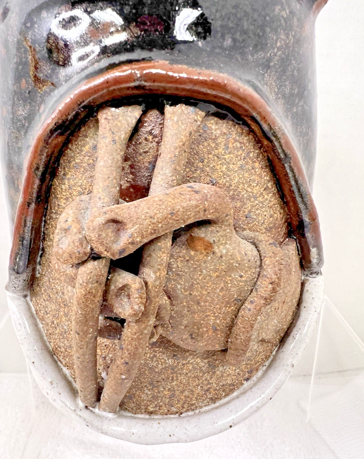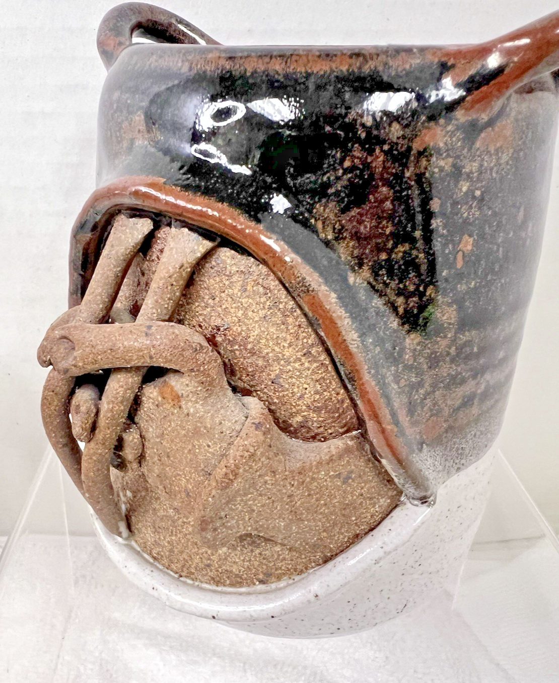Handmade Vessel Vase Pot w Human Hand Holding Chopsticks Art Pottery w Handles