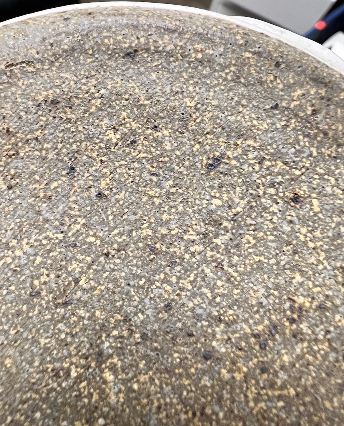 i think it looks like the tiny hand is holding chop sticks ??? you might see something else. It stands 5 1/4 to the handles and about 5 to the rim and the base is 4 inches wide top just over 2 3/4 wide. I think I see the shadow of a mark on the bottom, but it could be I'm wrong??? It's just a fun piece it could hold all your chopsticks