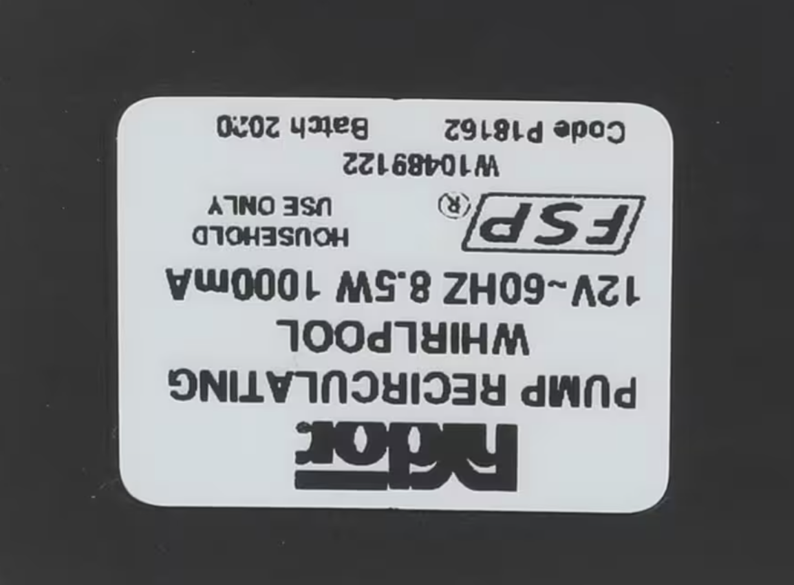 By choosing the Whirlpool W10489122 Circulating Pump, you ensure your ice machine continues to run at maximum efficiency. As a genuine OEM replacement, it delivers dependable performance, correct fit, and lasting durability ? avoiding costly breakdowns and guaranteeing smooth operation.