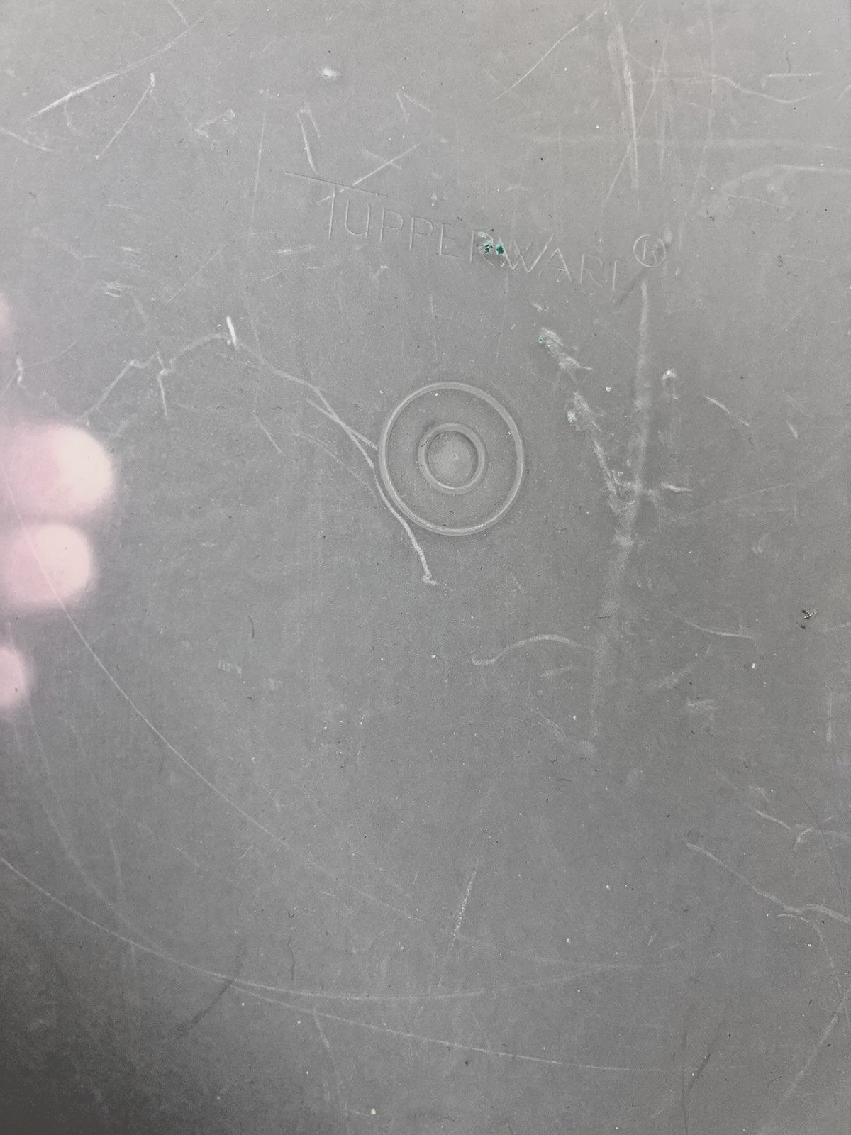 Vintage 3 Piece Tupperware 487-4 Ham Turkey Flavor Saver Keeper Insert Lid Paprika In good shape no stains or breaks however there are use marks and the lid also has a tiny green dot?