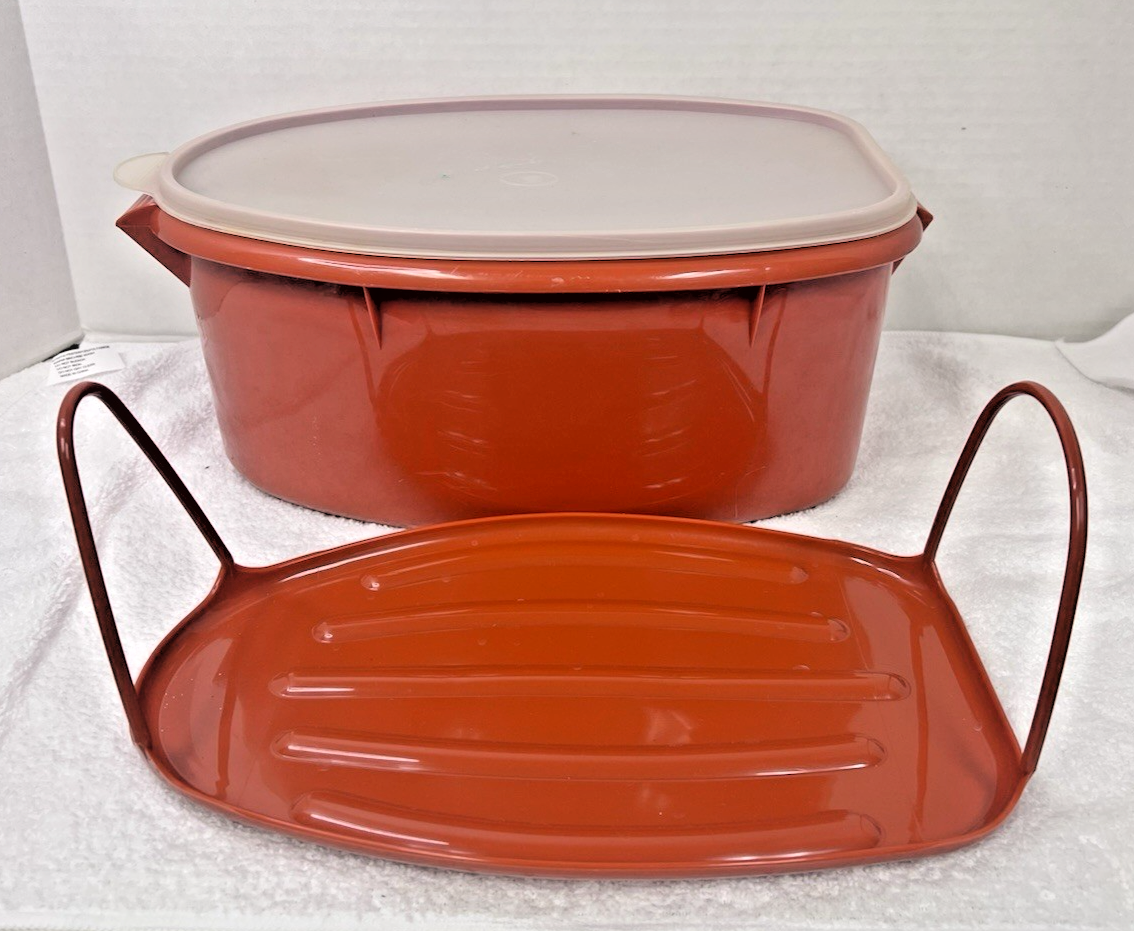 Vintage 3 Piece Tupperware 487 Ham Turkey Flavor Saver Keeper Insert Lid Paprika