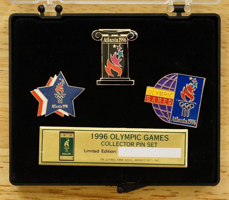 Vintage 1996 Atlanta Olympic Games LE Torch Souvenir Advertising Pins. Crisp excellent condition. Pins range 1"-1.25" tall