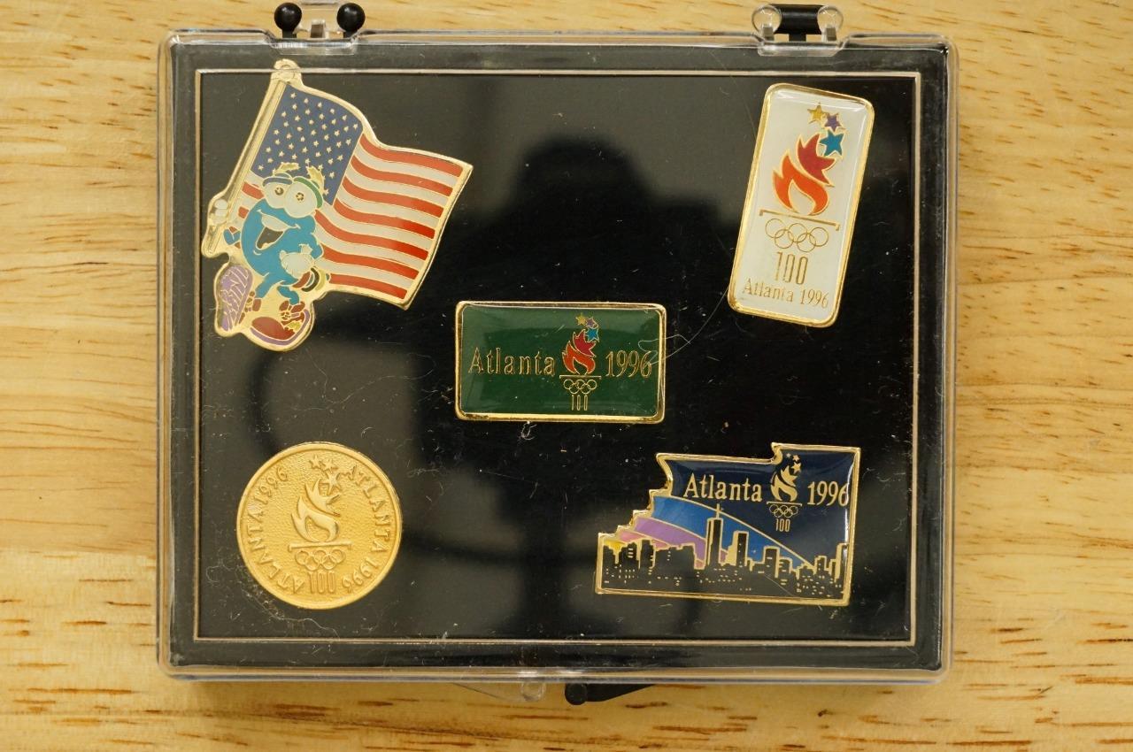 Vintage 1996 Atlanta Olympic Games Flag Mascot Torch Souvenir Pins LE Box Set