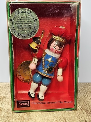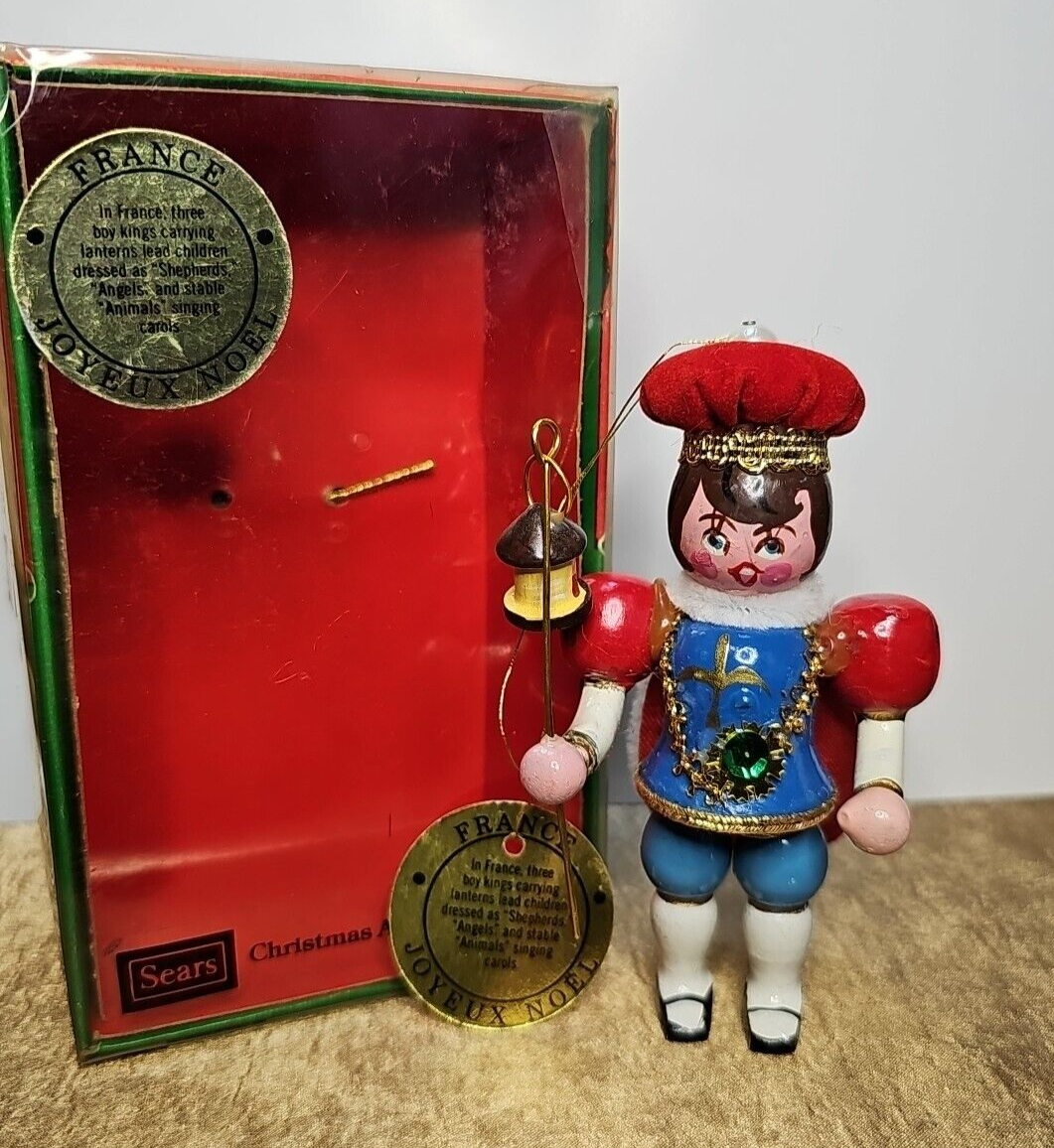 Vintage 80s Sears Roebuck Wooden Ornament Christmas Around The World France