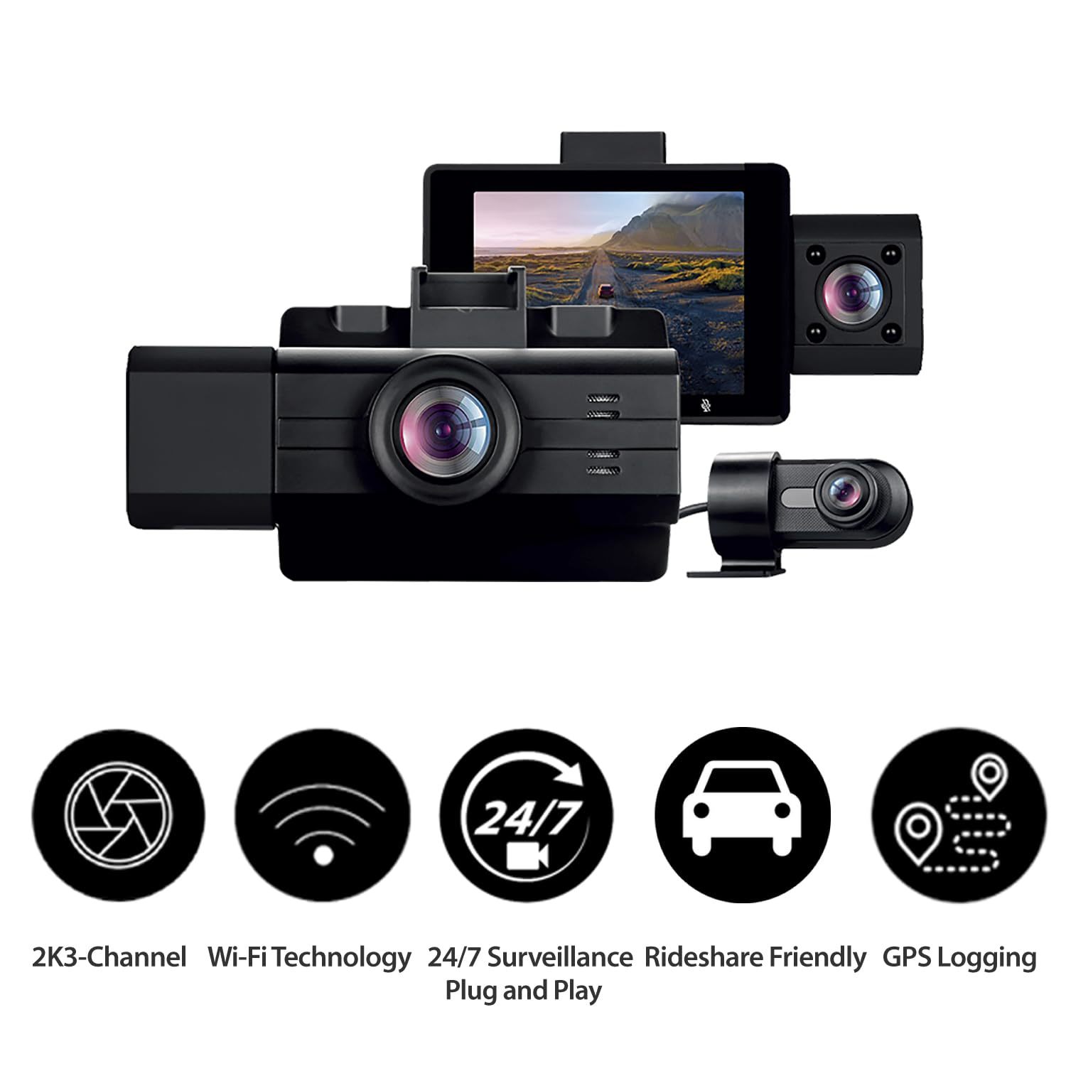 myGEKOgear Scout Pro 2K 3-Channel Dash Cam Surveillance Edition with Front View,