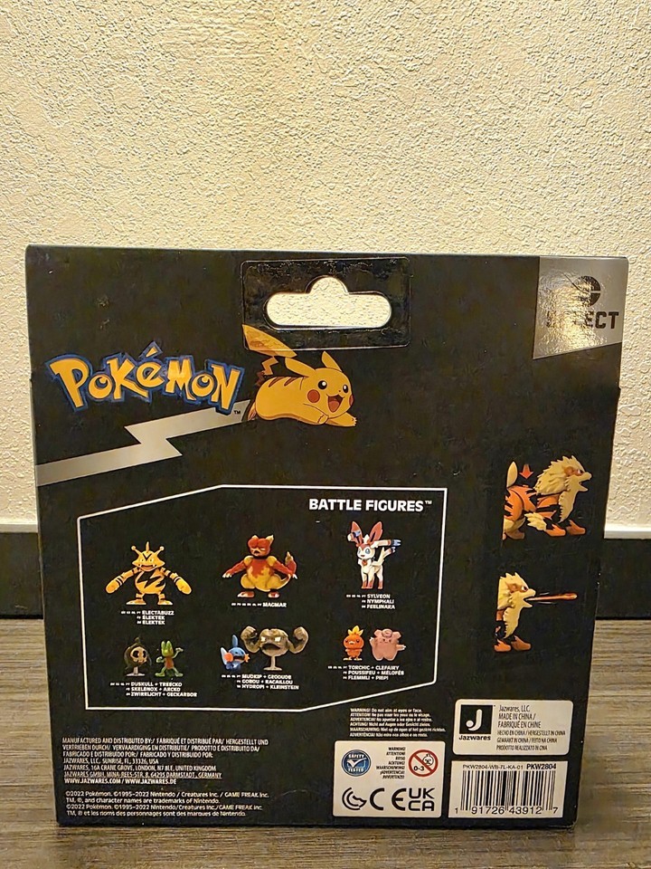 The Pokemon Select Evolution Multipack featuring Growlithe and Arcanine is a Nintendo action figure set from the popular Pokemon franchise. Produced by BOTI, this pack includes two English-language figures that are 72mm in height, 25mm in length, and 70mm in width. Suitable for children ages 3 and up, this multipack offers collectors and fans the opportunity to add these iconic Pokemon characters to their collection. With a weight of 9.5 ouncesg, this set is a must-have for any Pokemon enthusiast.